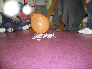 El segundo experimento que hemos hecho ha sido el del globo que al frotarlo hace que se ponga el pelo de punta y que se peguen papelitos